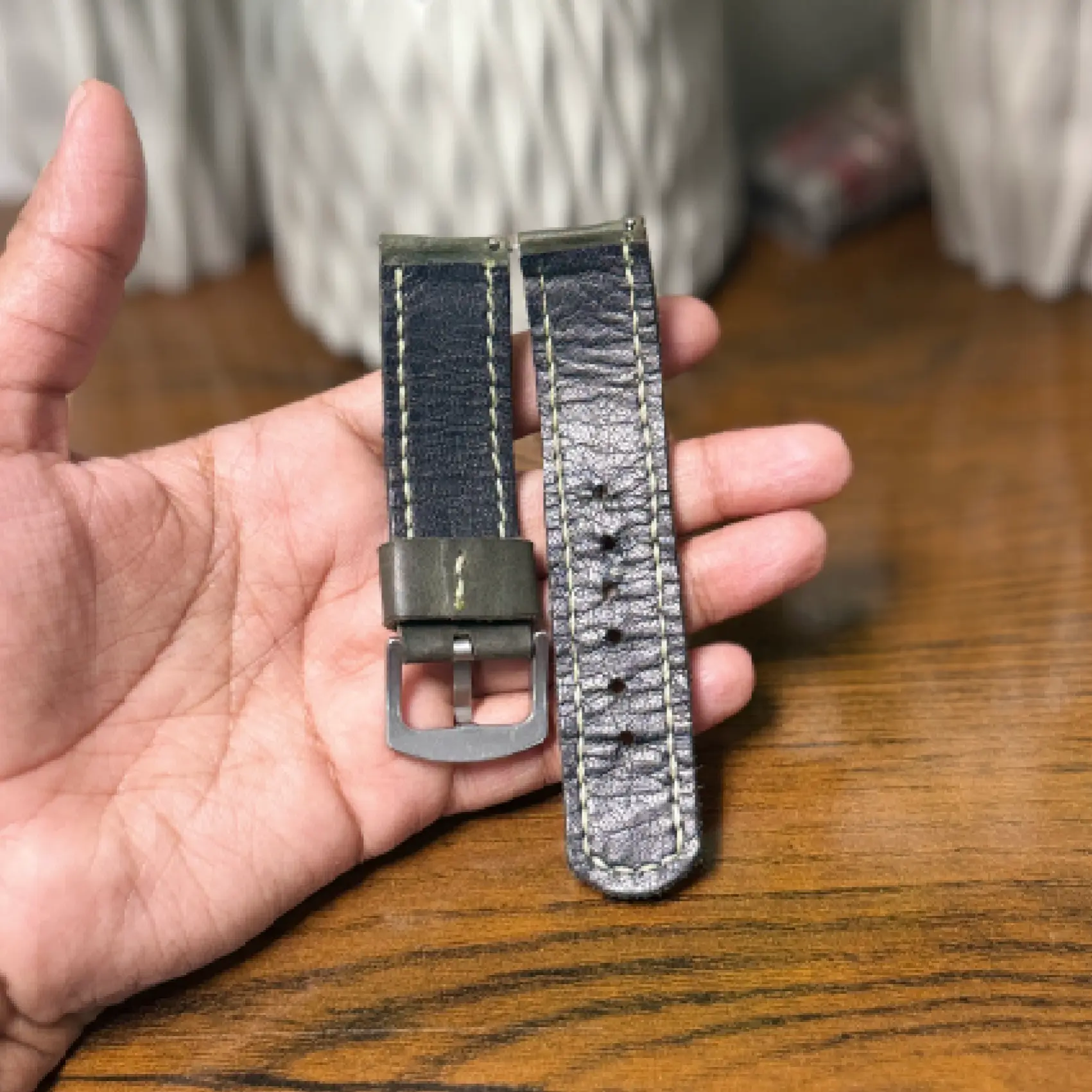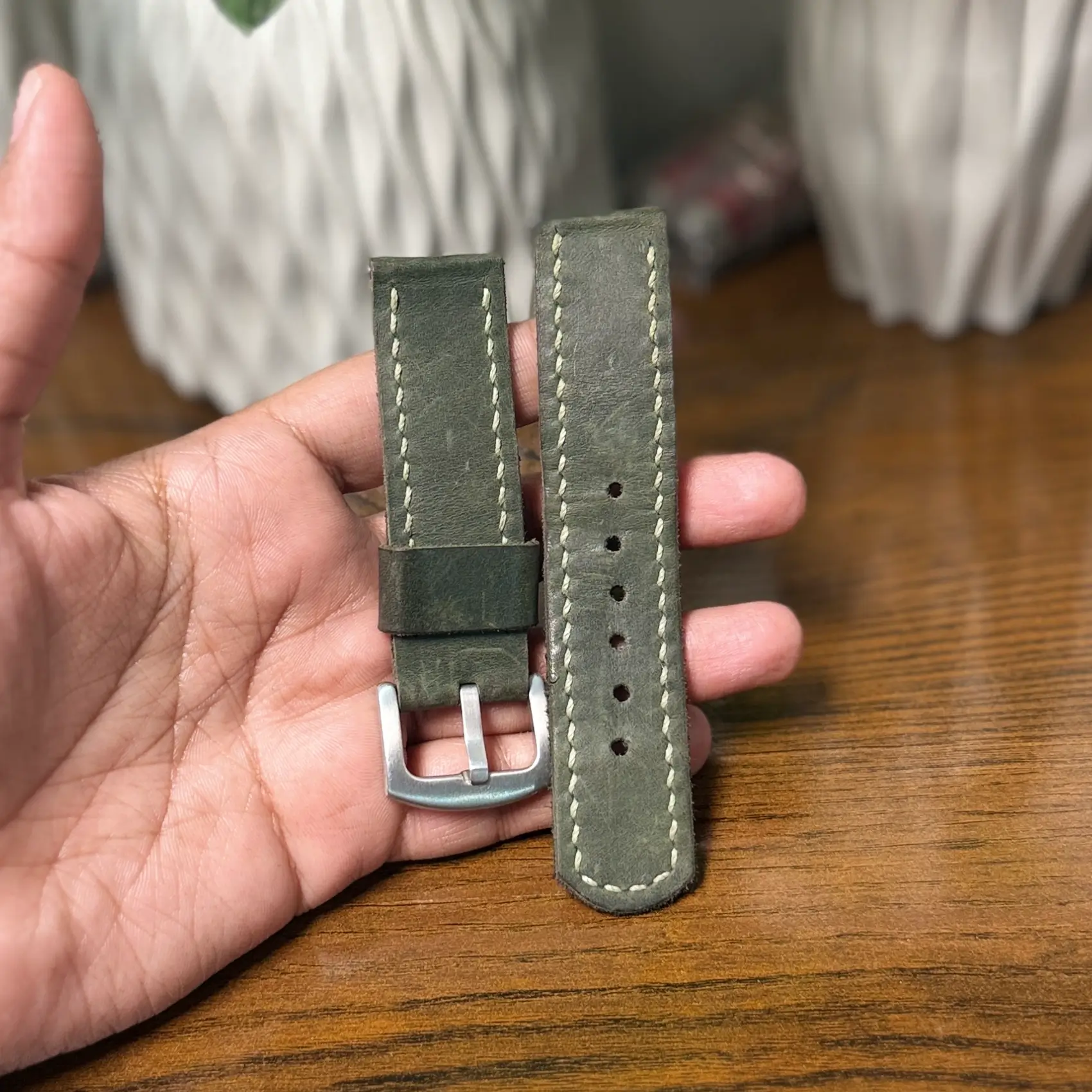 Olive Green Leather Strap 22mm